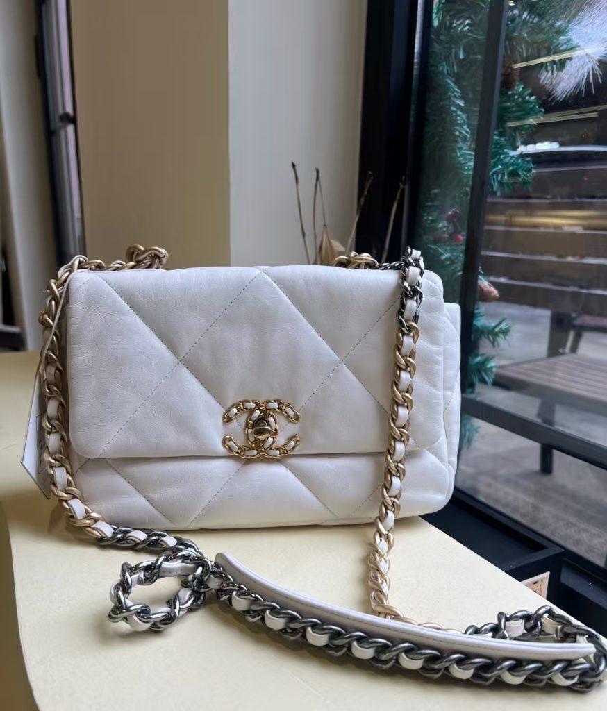 The large diamond pattern is so cute and soft, with an irresistible gentleness. Many people worry that white lambskin is difficult to care for, but it looks so gentle on the skin—it’s a complete transformation! The leather is very soft and comfortable, and it’s spacious and easy to carry. Sisters who usually carry black bags should definitely try this; it gives off a very casual yet sophisticated vibe and goes with everything!