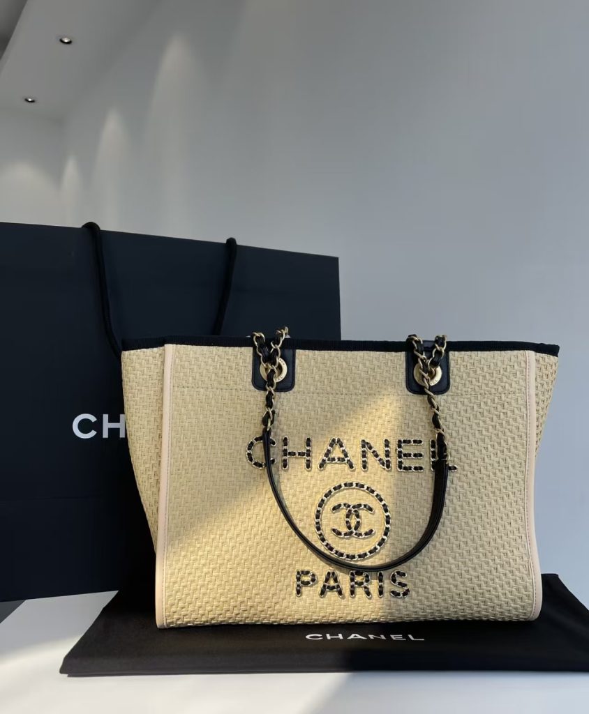 This is all you need for your holiday trip! Chanel Straw Woven Shopping Bag