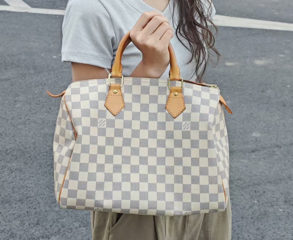 This bag features Damier Azur canvas and vegetable-tanned leather handles, offering a simple yet classic design. It’s spacious enough for commuting or short trips! The shoulder strap is highly flexible, allowing you to easily switch between hand-carrying and crossbody wear. The white Damier pattern is fresh and versatile.